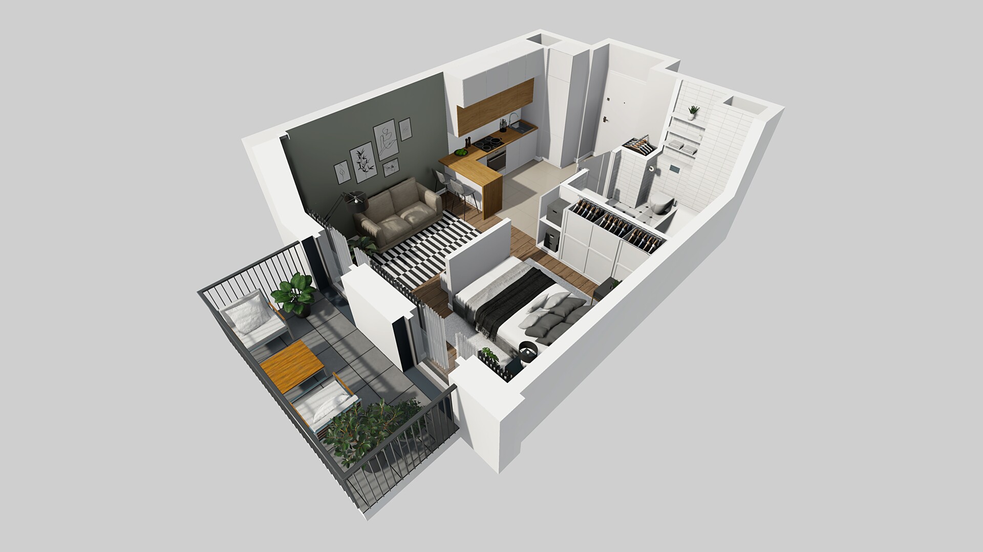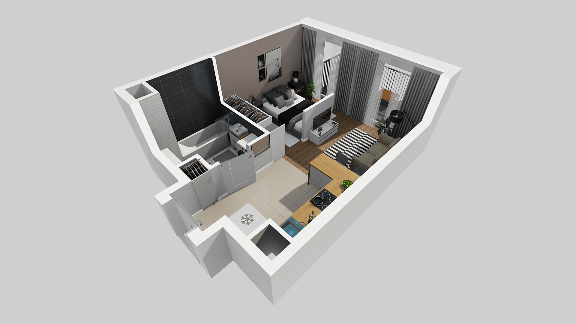 30,58 m2 1 pokój z aneksem 2 Piętro dowiedz się więcej