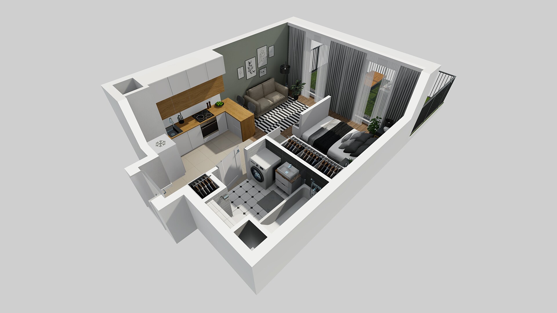 34,96 m2 1 pokój z aneksem 3 Piętro dowiedz się więcej